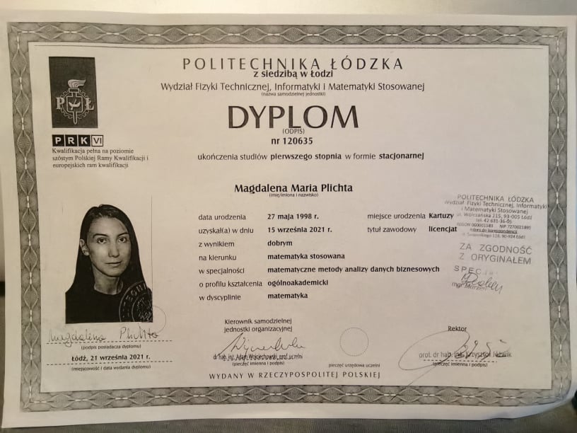 Posiadanie dokumentów, potwierdzających wykształcenie