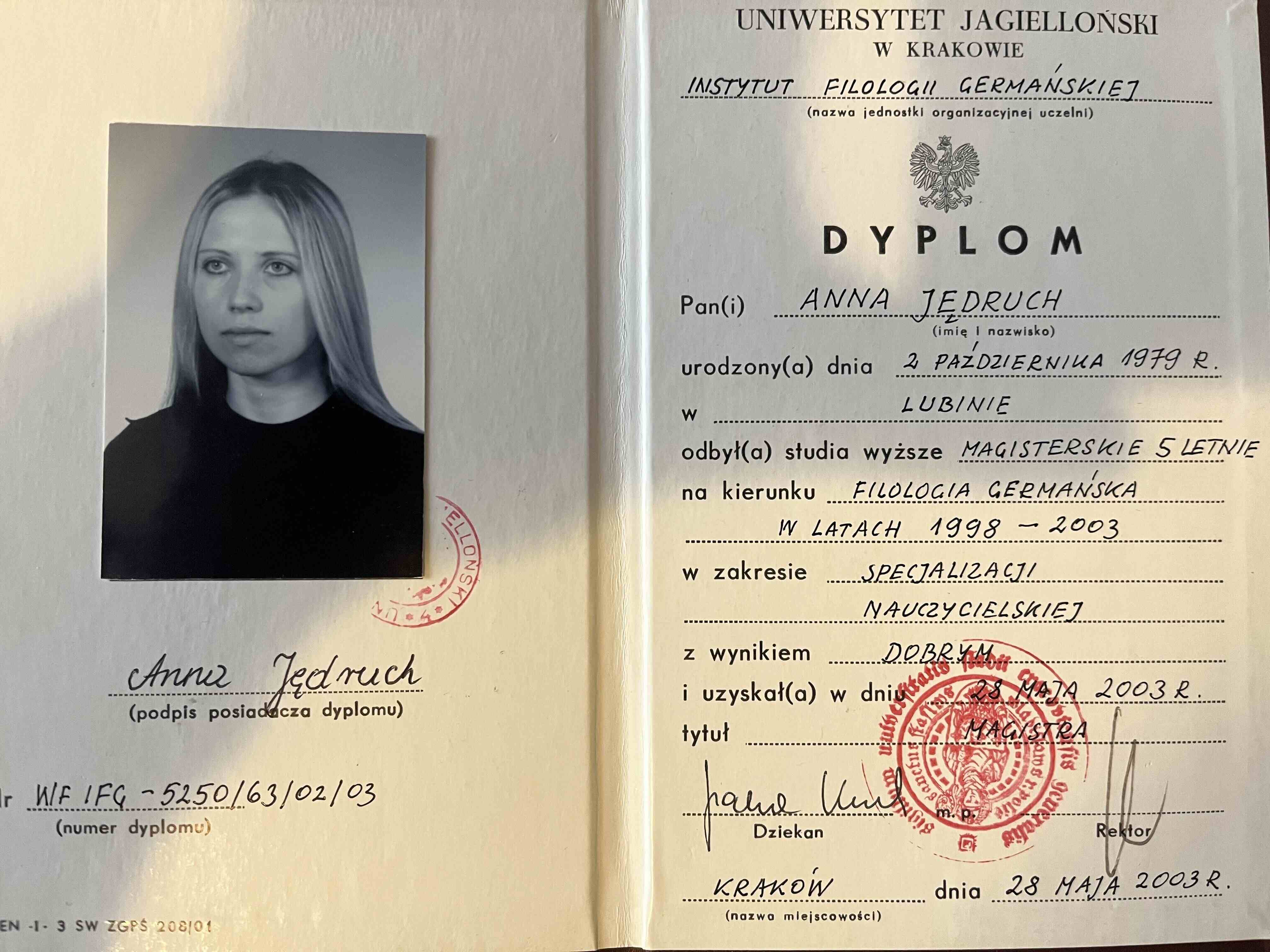 Jestem absolwentką Uniwersytetu Jagiellońskiego, gdzie zdobyłam solidne przygotowanie językowe i metodyczne. Od ponad 20 lat uczę języka angielskiego na wszystkich poziomach zaawansowania – od kursów dla początkujących po zajęcia konwersacyjne na poziomie zaawansowanym. Prowadzę zarówno lekcje języka ogólnego, jak i specjalistycznego, w tym biznesowego, przygotowując kursantów do swobodnej komunikacji w codziennych i zawodowych sytuacjach.