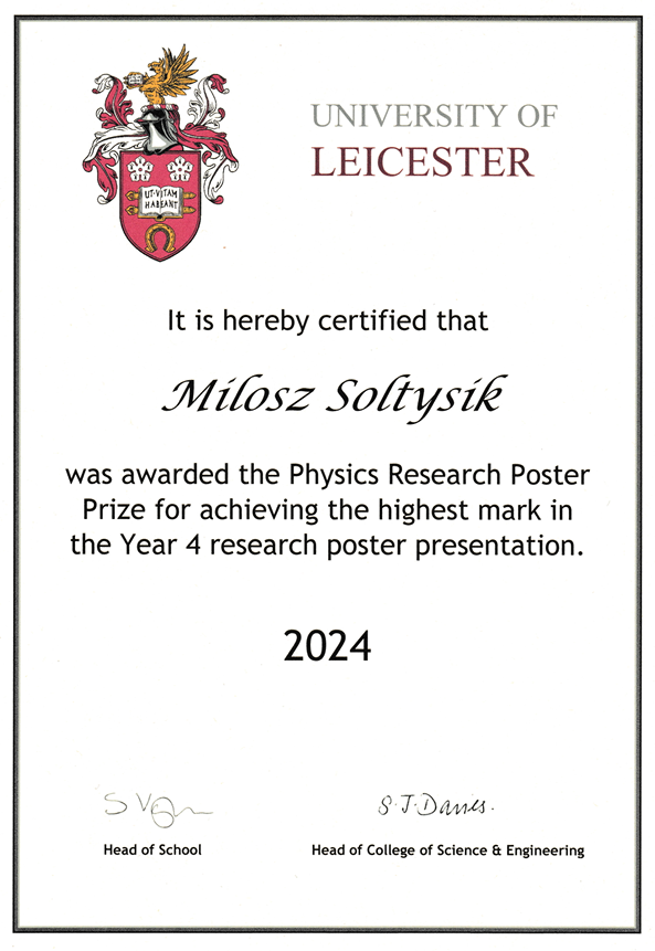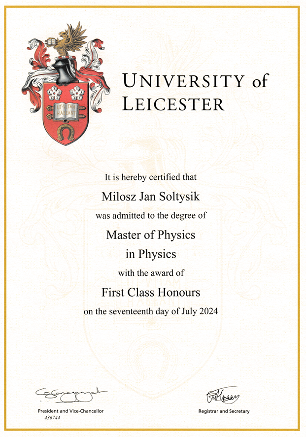 Moja edukacja w Polsce zakończyła się po maturze, w której z fizyki uzyskałem wynik lepszy niż 94% zdających. To pozwoliło mi się dostać na studia w Wielkiej Brytanii, na University of Leicester, który pod względem fizyki plasował się w najlepszej 10 uniwersytetów w całym kraju. Studia ukończyłem z honorami pierwszej klasy, czyli najwyższym wyróznieniem, oraz nagrodą za najleszy wynik z pracy magisterskiej. Tematem mojej pracy był mechanizm Higgsa w zakrzywionej czasoprzestrzeni czarnej dziury. Jeśli chodzi o moje doświadczenie w nauczaniu, podczas studiów udzielałem korepetycji uczniom ichniejszej matury z fizyki, oraz pracowałem dorywczo jako zastępca nauczyciela w różnych szkołach. Tutaj oferuję korepetycje dla maturzystów i studentów na każdym poziomie, zarówno tym którzy z fizyką sobie nie radzą, jak i tym, którzy chcą uzyskać jak najwyższy wynik. Nauczam również w języku angielskim.