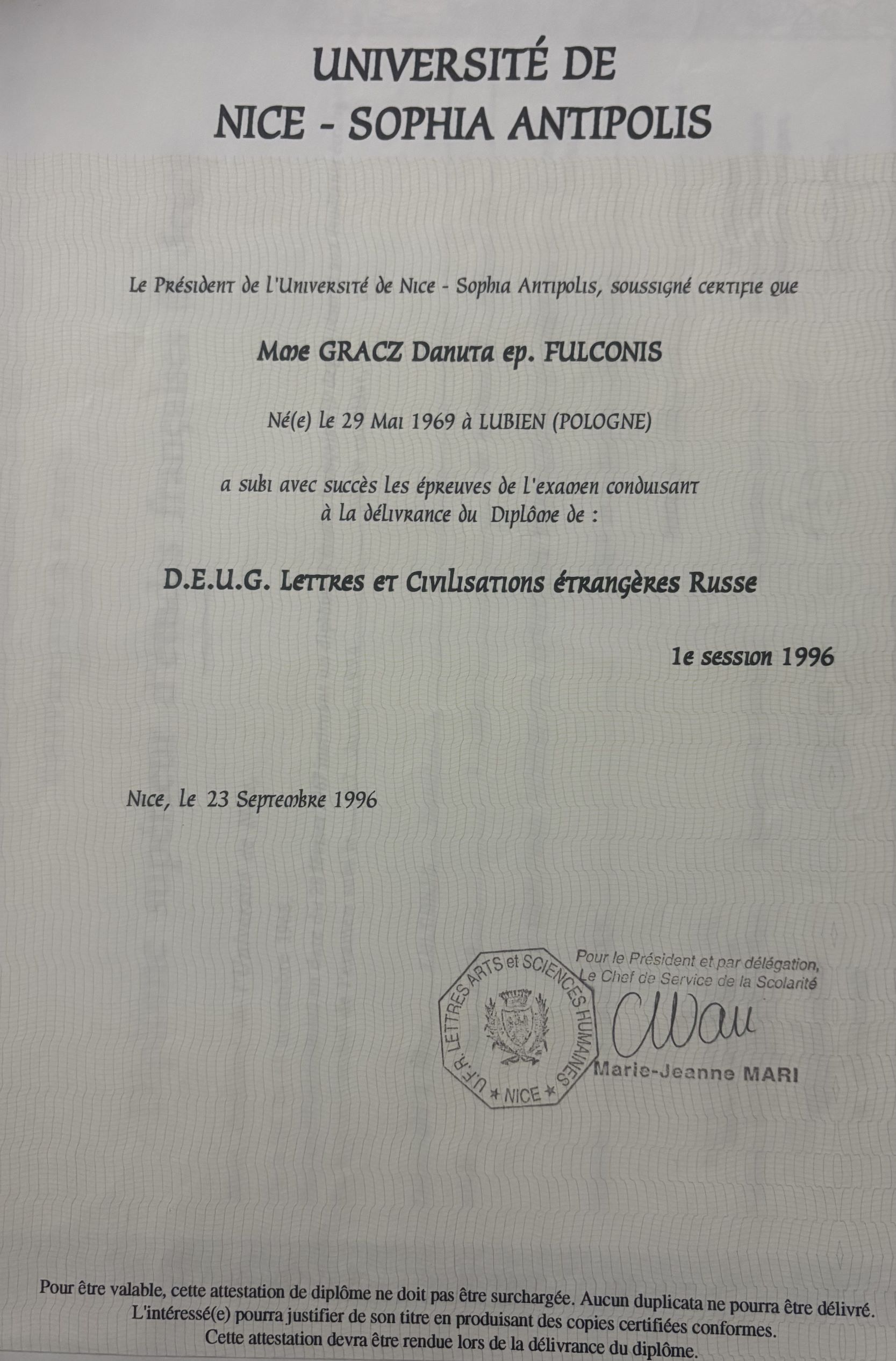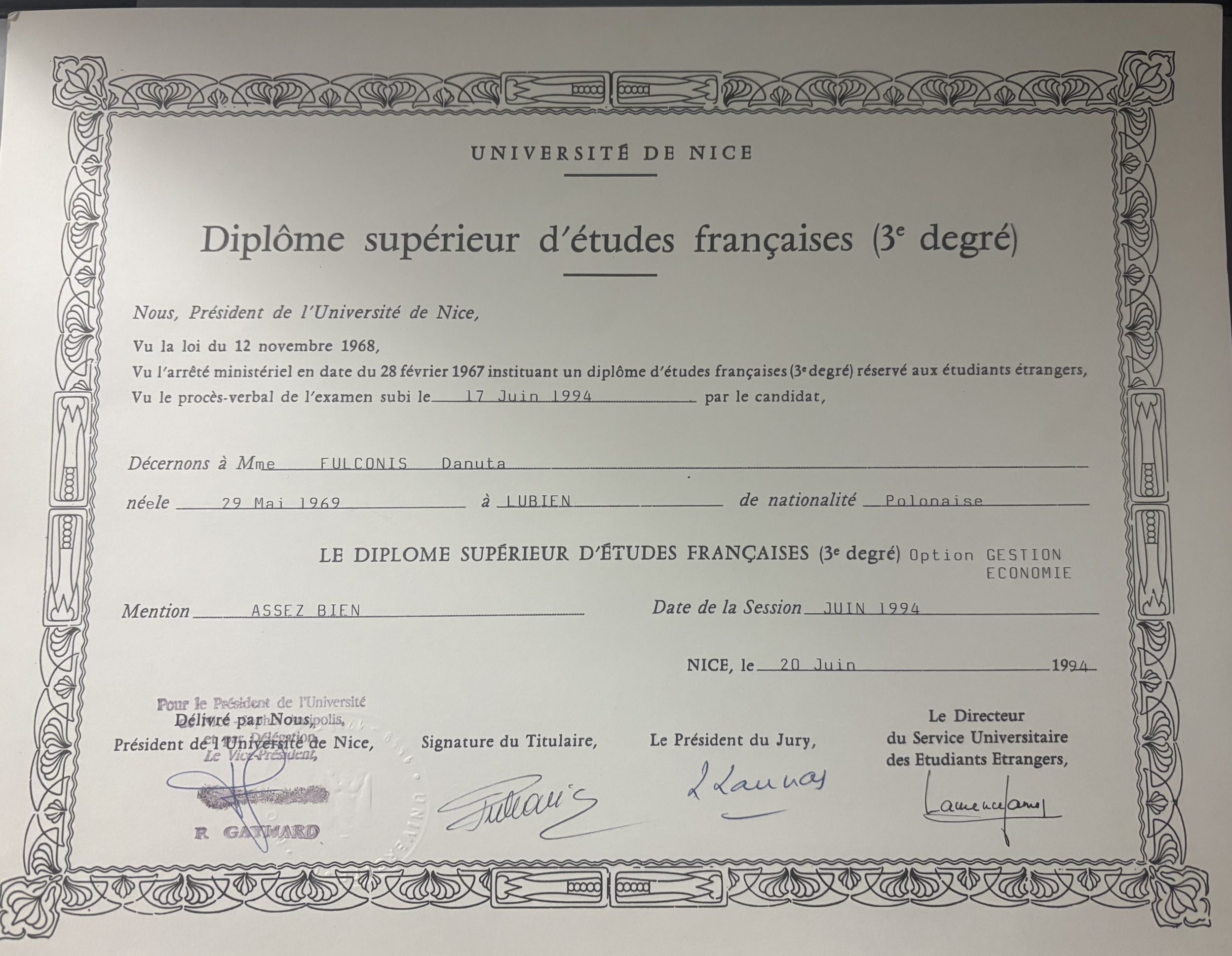 W Polsce ukończyłam studia pedagogiczne i pracowałam jako nauczycielka wczesnoszkolna. We Francji odbyłam trzyletnie studia na Uniwersytecie w Nicei na kierunku FLE (Français Langue Étrangère), które dały mi solidne przygotowanie metodyczne do nauczania języka francuskiego zarówno na poziomie początkującym, jak i zaawansowanym. Studiowałam również język rosyjski.