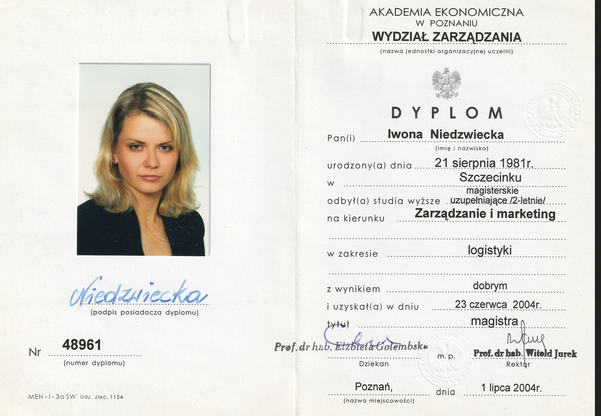 Posiadanie dokumentów, potwierdzających wykształcenie