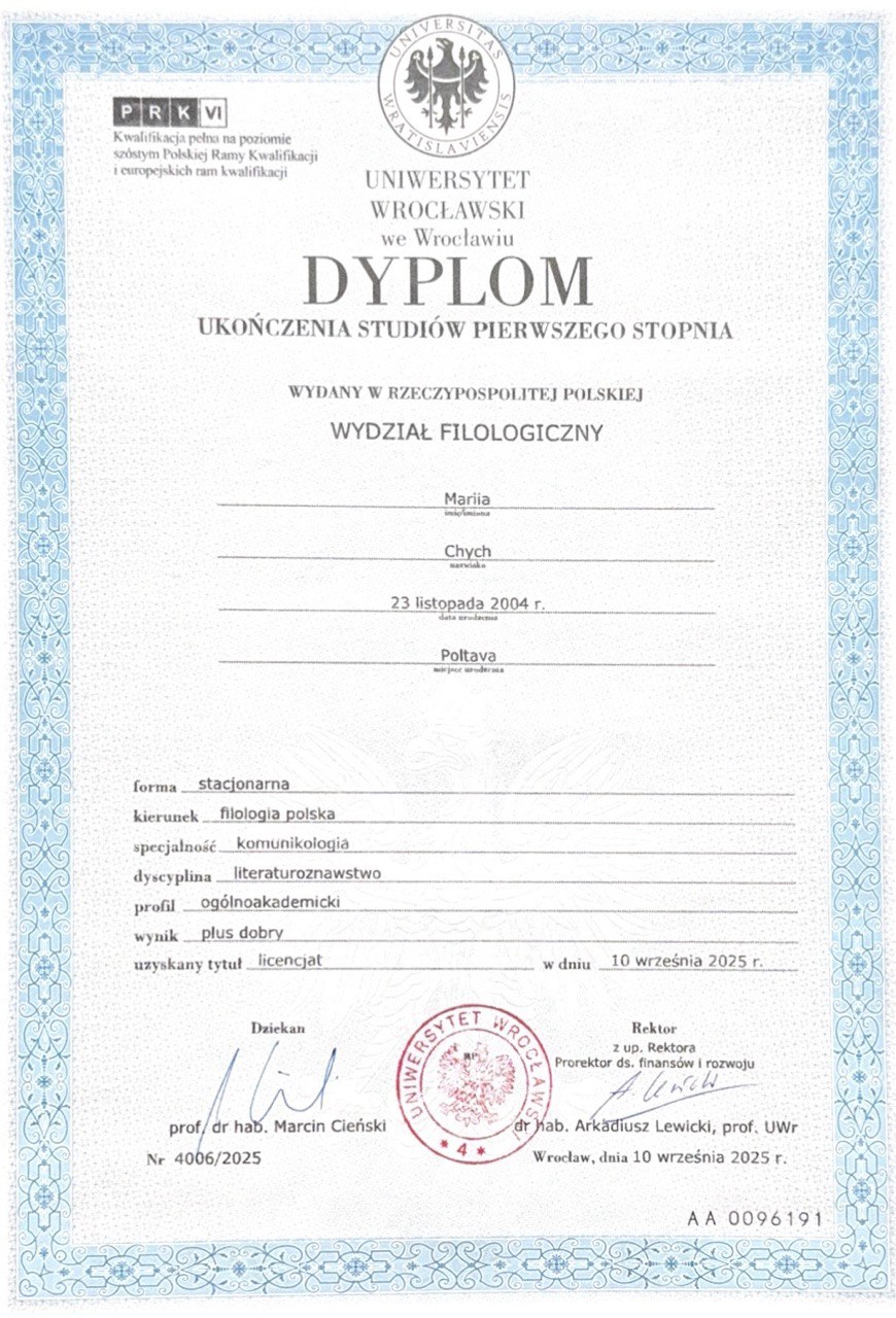 Cześć! Nazywam się Mariia i prowadzę indywidualne zajęcia z języka polskiego dla obcokrajowców. Ukończyłam filologię polską (studia licencjackie), obecnie kontynuuję naukę na studiach magisterskich. Mam 21 lat i jestem bardzo aktywną, wesołą osobą.