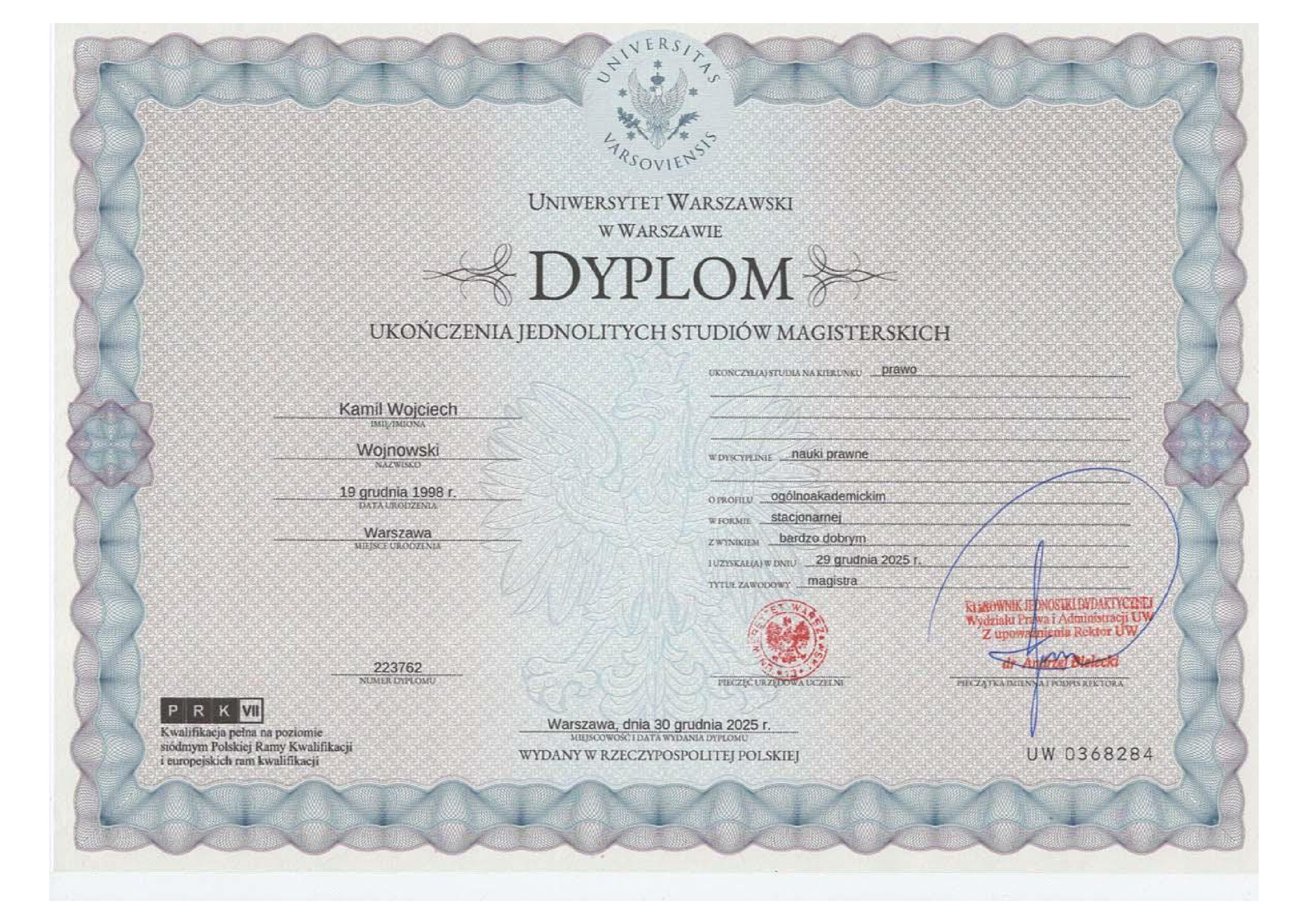 Jestem absolwentem Uniwersytetu Warszawskiego. Posiadam już ponad 7-letnie doświadczenie w nauczaniu osób zarówno na poziomie szkoły podstawowej, liceum, jak i studiów. Obecnie poza zwodowym prowadzeniem korepetycji, zajmuję się także działalnością naukową i mogę pomóc z wybranymi przedmiotami z zakresu prawa, historii, wosu oraz nauk politycznych.