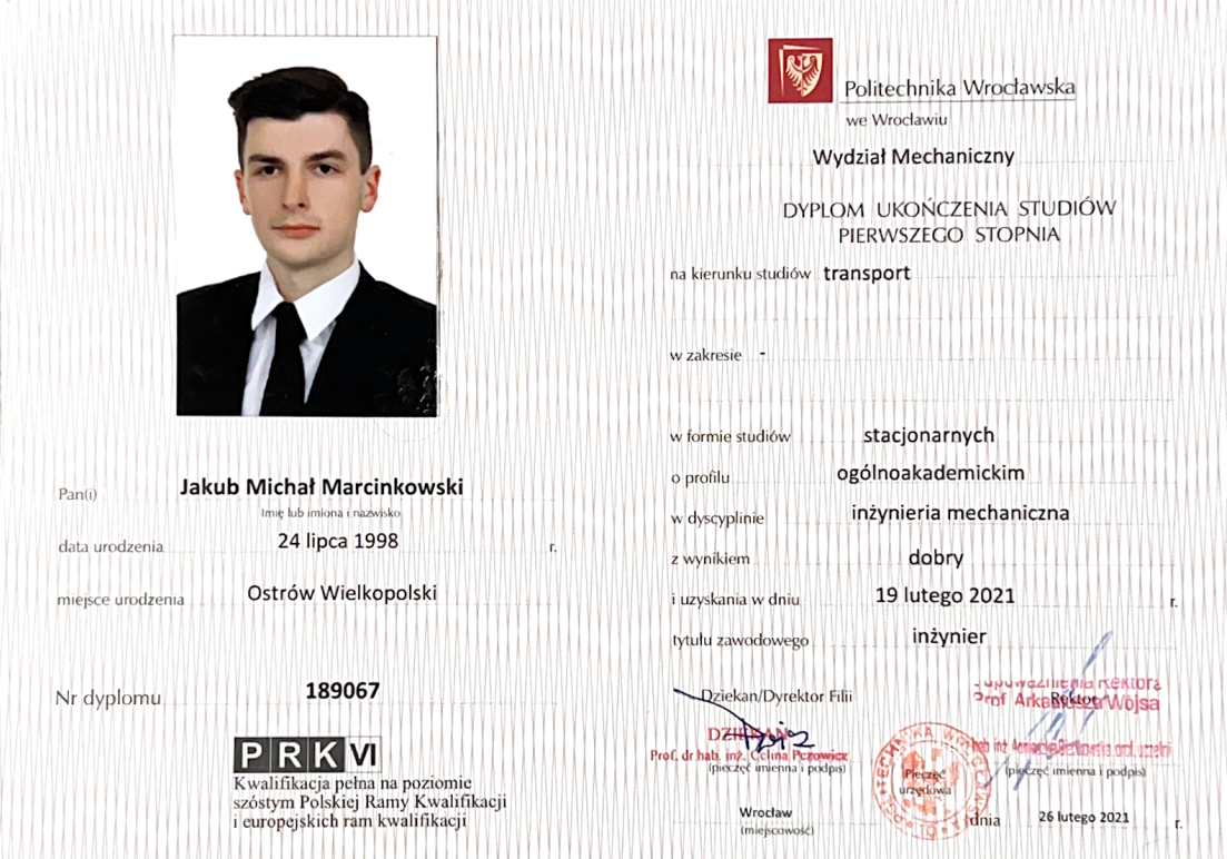 Posiadanie dokumentów, potwierdzających wykształcenie