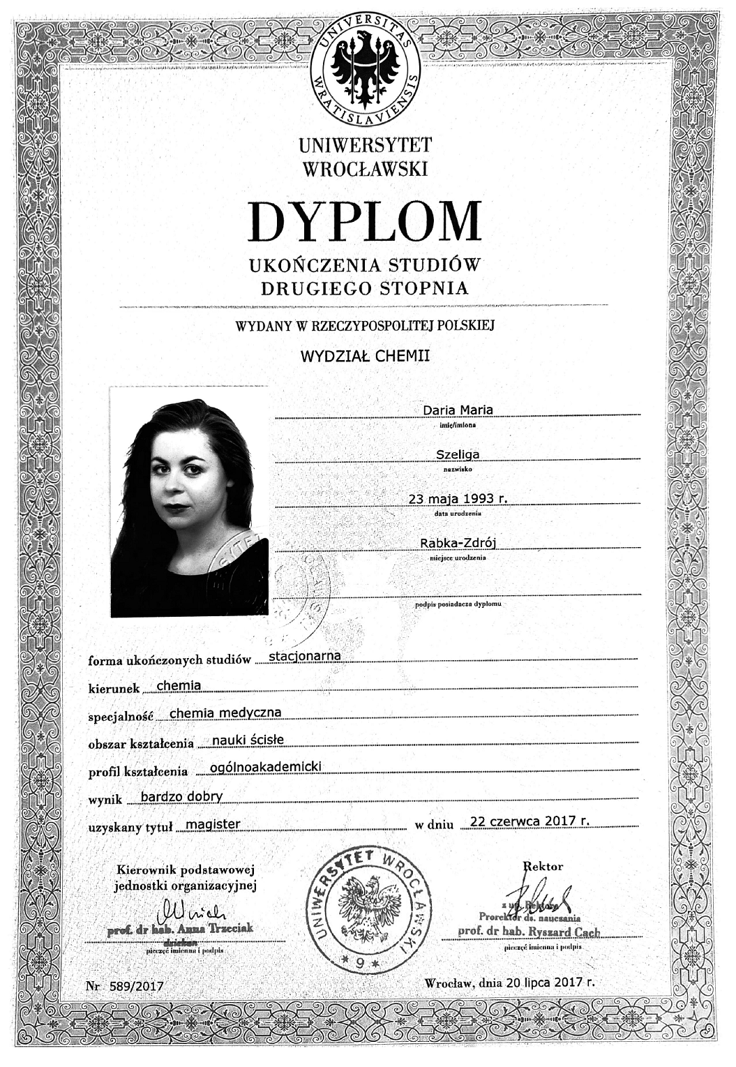 Pierwsze lata studiów spędziłam w Krakowie na Uniwersytecie Jagiellońskim zajmując się elektrochemią oraz chemią organiczną. Na studia magisterskie przeprowadziłam się do Wrocławia, gdzie zajęłam się chemią medyczną. Obecnie zgłębiam wiedzę z zakresu krystalografii i chemii nieorganicznej a moja praca doktorska jest oparta na badaniach aktywności farmakologicznej potencjalnych leków, przy współpracy z Uniwersytetem Medycznym. Oprócz pracy naukowej moją wielką pasją jest nauczanie w sposób mniej standardowy niż w szkole – w przyjemnej atmosferze można 10 x więcej. Do pracy z uczniami przygotowało mniej Centrum Edukacji Nauczycielskiej, praca w szkole średniej oraz prowadzenie licznych laboratoryjnych kursów maturalnych na Wydziale Chemii.