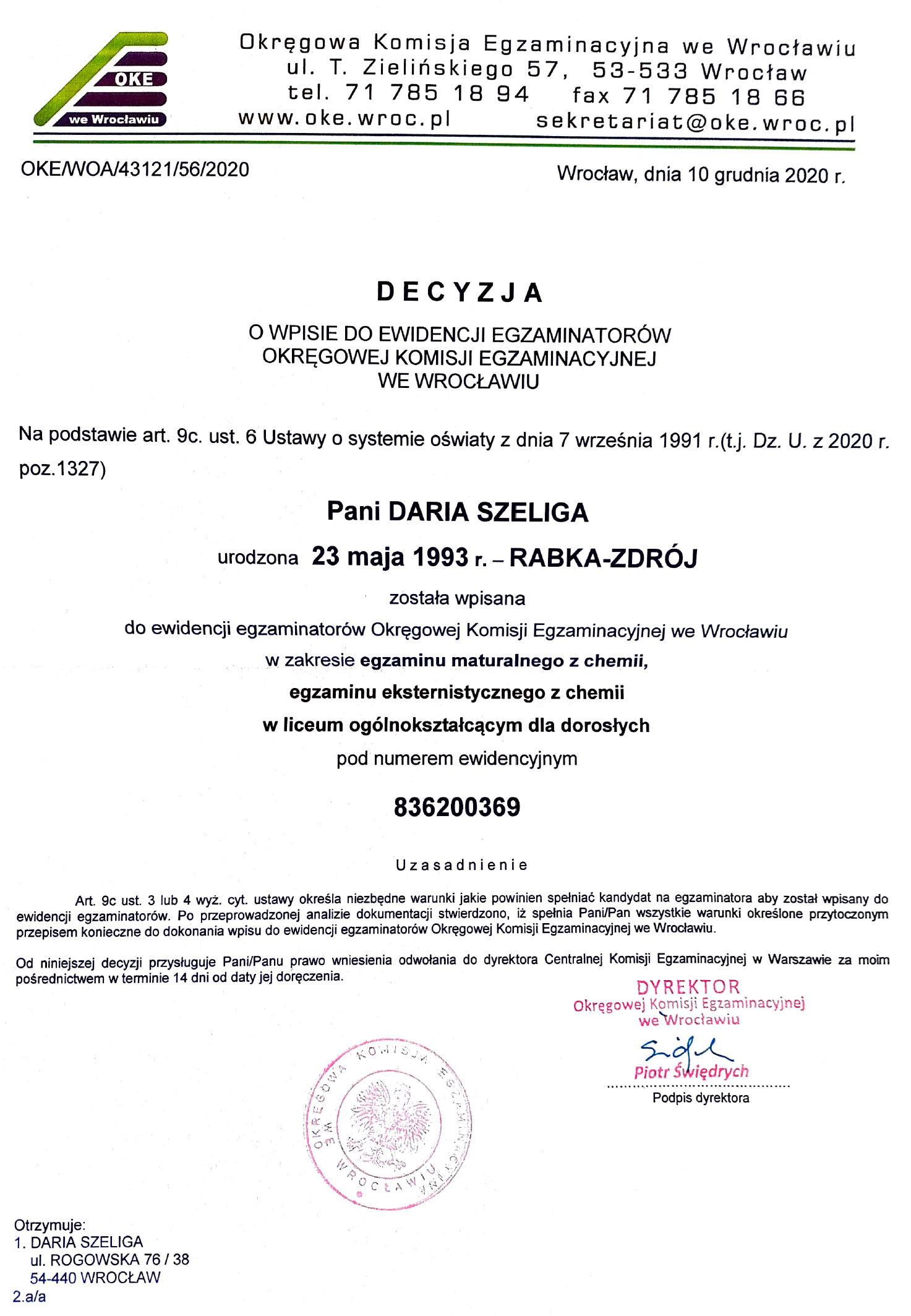 Jestem egzaminatorem OKE z chemii, autorką materiałów online do nauki chemii oraz nauczycielem z kilkuletnim stażem.